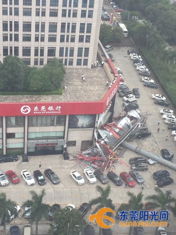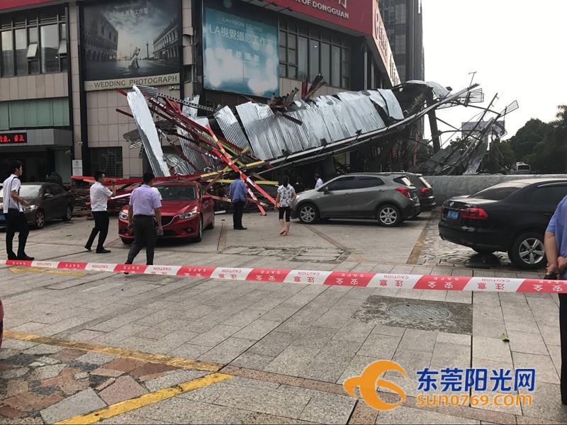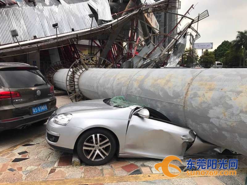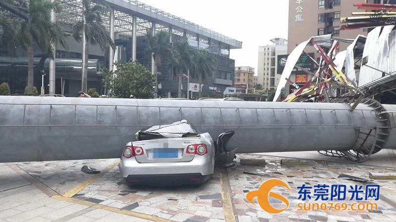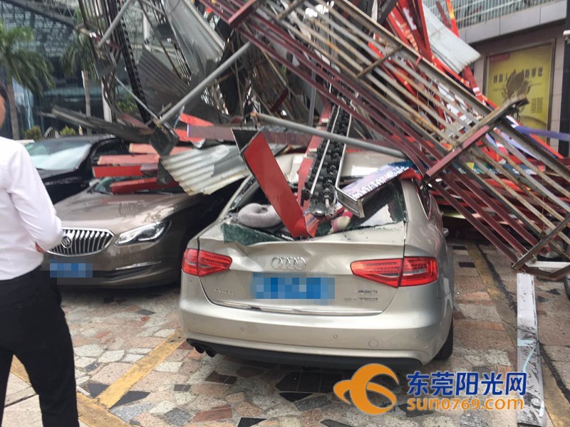 9月4日中午,根據(jù)廣東東莞網(wǎng)友爆料稱,位于東莞市東莞大道輔道一怡豐路十字路口一個大型廣告牌倒塌導致停車場內(nèi)多車受損嚴重,有幾輛車直接被壓扁,完全報廢,不過慶幸的是沒有造成人員傷亡。