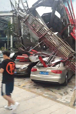 廣東臺風來襲,大型廣告牌被吹倒,損失嚴重!