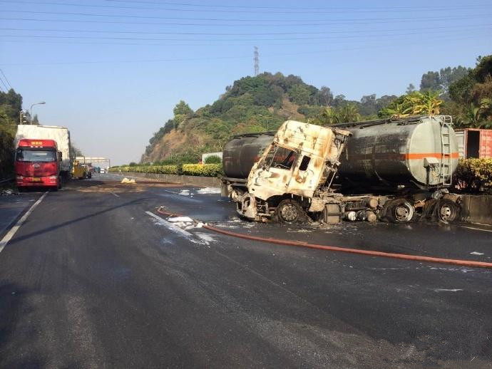 今天上午十一點左右從東莞想廣州方向到達虎門大橋虎門出現一起交通事故,由于我們想廣州方向,所以沒有受到影響,現場濃煙滾滾在虎門大橋向東行駛方向看到一輛載有類似化學物的油罐車碰到護欄發生起火,當時的情況看來并未發生人員的傷亡,由于罐車橫向占據了幾條車道導致交通堵塞,后來在新聞上面看見經過消防確認存在甲醇泄漏現象,導致周圍居民投訴,出現嚴重的氣味,由于化學物品的嚴重泄漏,導致清理現象困難,為交通帶來擁堵。
