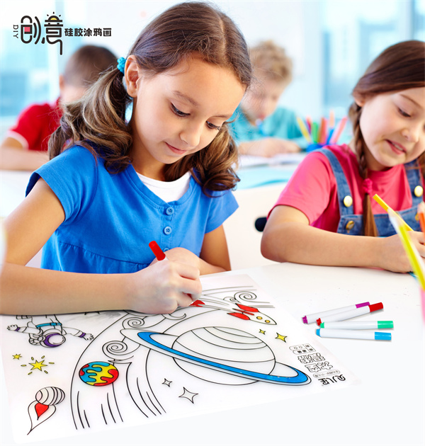 硅膠涂鴉畫主要采用兒童教育方式提升兒童動(dòng)手能力,以及親子教育知識(shí)學(xué)習(xí)等效果,培養(yǎng)兒童的認(rèn)知以及專注力以及藝術(shù)創(chuàng)造能力等,產(chǎn)品主要采用環(huán)保硅膠片結(jié)合轉(zhuǎn)印印刷底色方式提供一定的表面圖案知識(shí),經(jīng)過(guò)水性水彩筆涂鴉達(dá)到創(chuàng)作的效果!