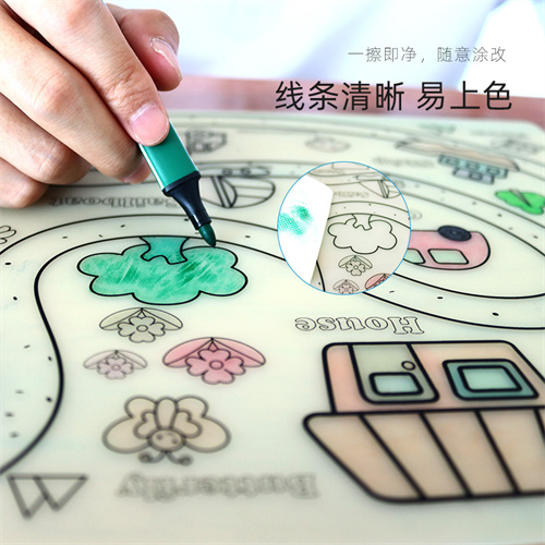 材料環(huán)保柔軟,硅膠墊廠家采用優(yōu)質(zhì)食品級(jí)硅膠材料生產(chǎn)加工,經(jīng)過(guò)高溫200度將模紙轉(zhuǎn)印二次成型達(dá)到表面底色圖案效果,過(guò)200度高溫具有優(yōu)良附著力,多種創(chuàng)作思維底色圖案,可鍛煉兒童的思維能力以及創(chuàng)作能力,優(yōu)質(zhì)水性筆不留筆污色痕,可可隨意涂改反復(fù)使用,反復(fù)涂鴉!