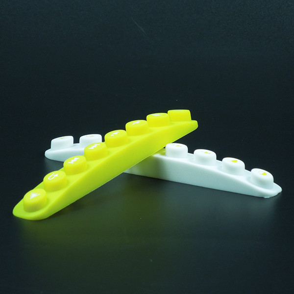 此款硅膠按鍵采用淡黃色色母調(diào)制,黃色色母加上半透明的硅膠原料配合硫化劑的添加是通過在里面加入對應(yīng)顏色比例的顏色色膏混煉,得到相應(yīng)需要的顏色,可自定義顏色定制加工生產(chǎn),原材料采用食品級環(huán)保硅膠、質(zhì)地柔軟,可塑性強(qiáng)。低碳環(huán)保,無毒無味,柔軟、防滑、防震、防滲水、隔熱、不易老化、不褪色、易清洗。